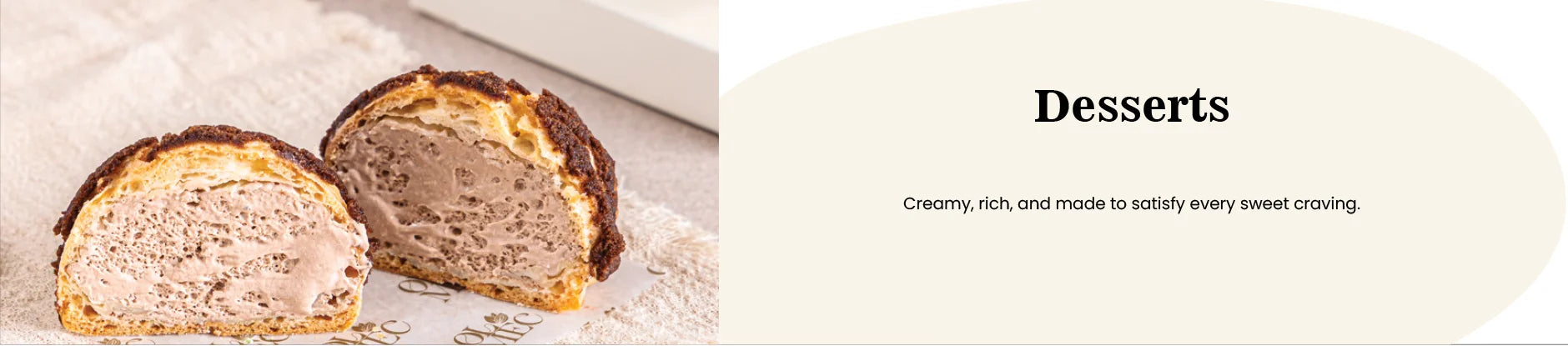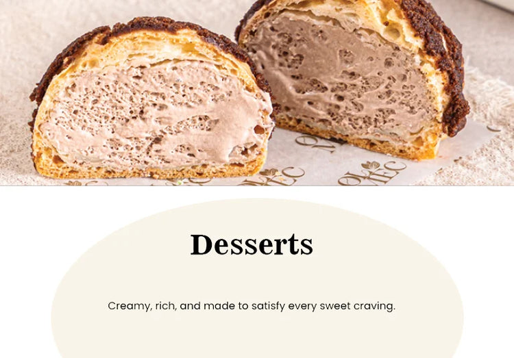 Cream-filled choux pastry topped with hazelnut glaze — light, airy, and indulgent.- PKR 250