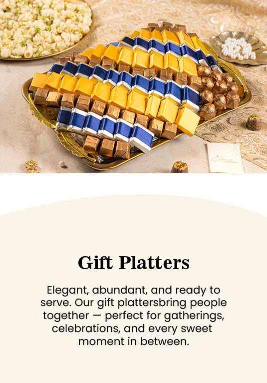 A grand token of celebration, the Shaadi Mubarak Platter features decadent chocolate bon bons arranged on a luxurious round gold platter, tied with an elegant emerald green ribbon.- PKR 18,900