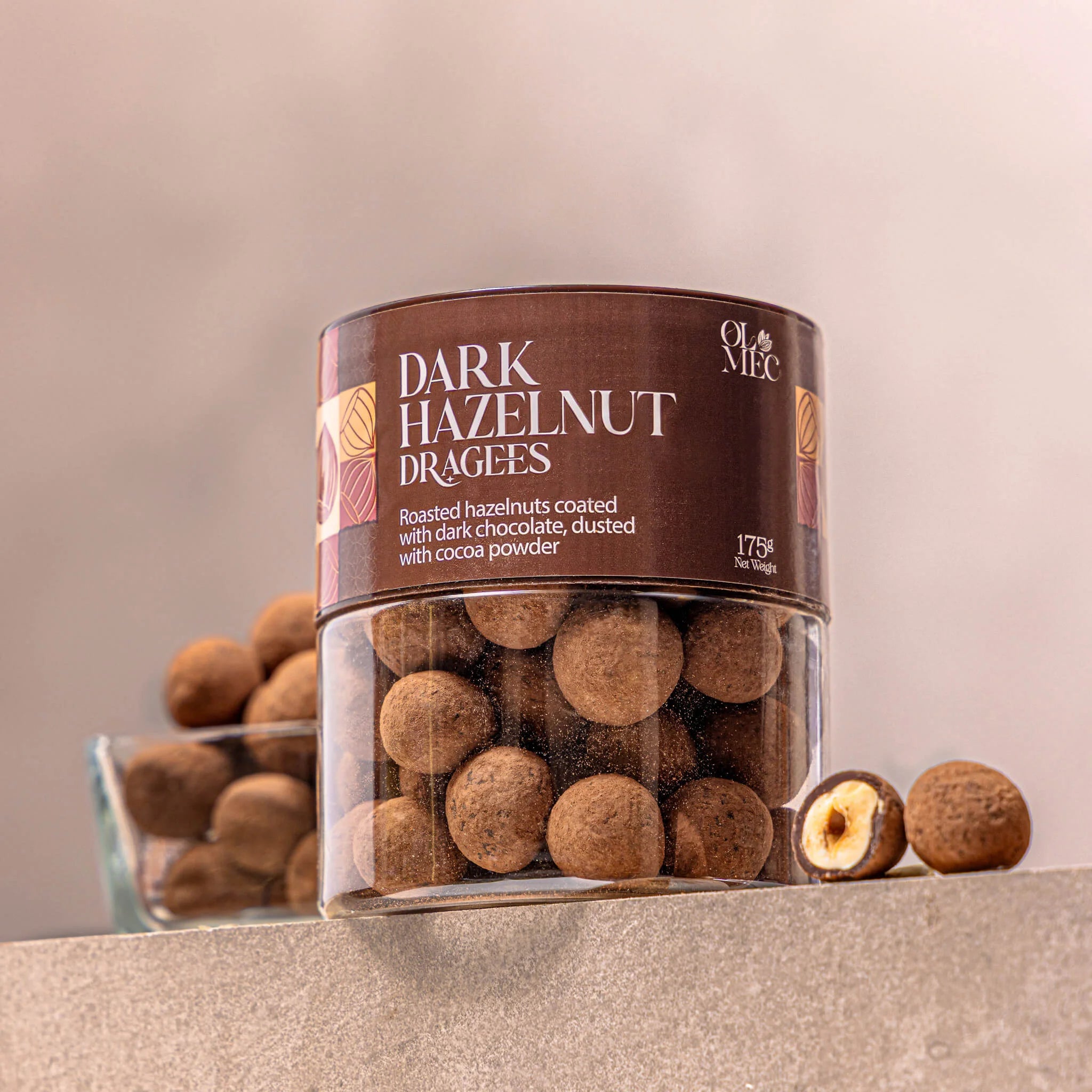 Crunchy hazelnuts enrobed in 56% bittersweet dark chocolate — an elevated snack for any moment.