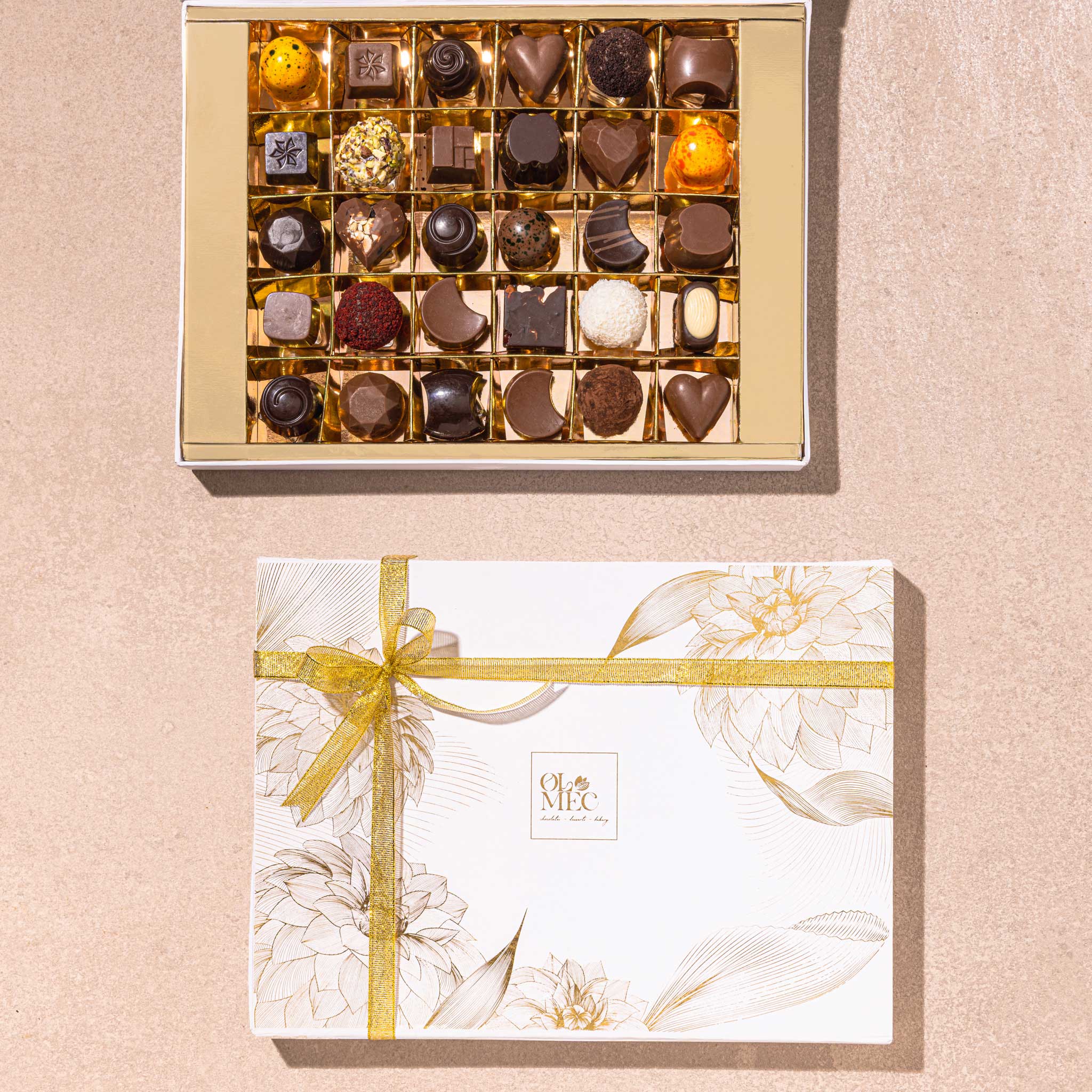 This ivory and gold box filled with 30 artisanal bon bons is sophisticated gifting at its finest.